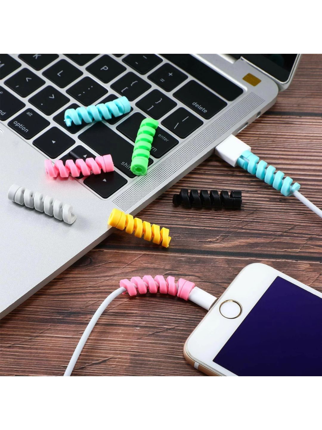 Keep your charging cables safe and long-lasting with these colorful spiral cable protectors. Designed from durable, flexible silicone, they wrap easily around your cables to prevent bending, fraying, and breakage.